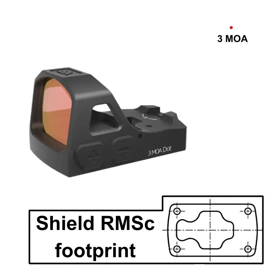Este mira de punto rojo utiliza el estándar de huella Shield RMSc.