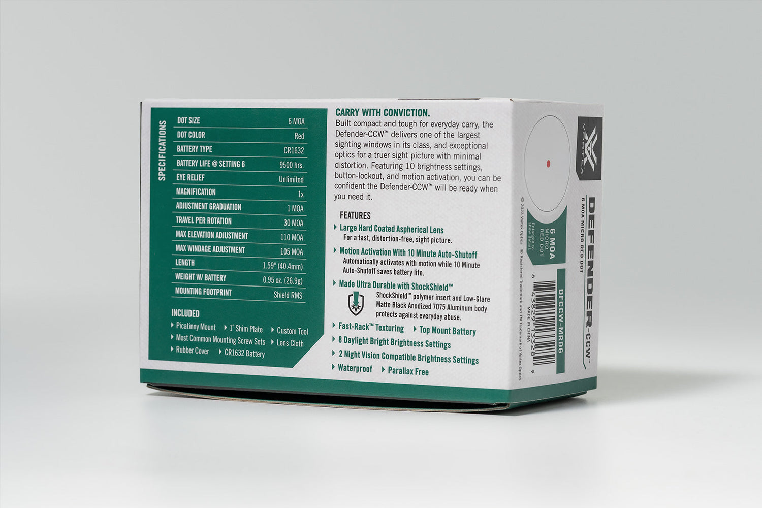 Diseñada pensando en el porte discreto moderno, esta óptica réflex ultradelgada ofrece adquisición rápida de objetivos en situaciones críticas—sin comprometer la ocultabilidad. Su huella compacta y diseño ligero la hacen ideal para pistolas slimline y plataformas micro-compactas, mientras sigue ofreciendo un rendimiento robusto en el que puedes confiar.